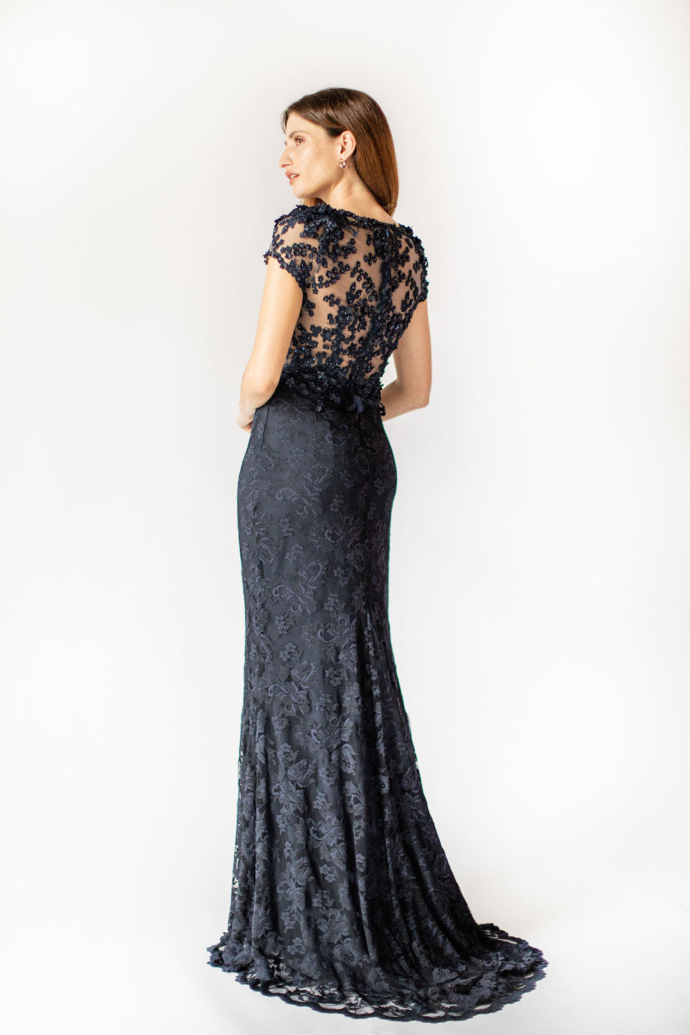 Erleben Sie himmlischen Zauber in unserem Celestial Mermaid Elegance Gown, einer längeren Version unseres bezaubernden Spitzenkleides, das zeitlose Eleganz mit modernen Details verbindet. Dieses Kleid besticht durch eine faszinierende Meerjungfrauen-Silhouette, einen gewagten Schlitz und besondere Applikationen im oberen Bereich, ergänzt durch transparenten Tüll im Rücken.
