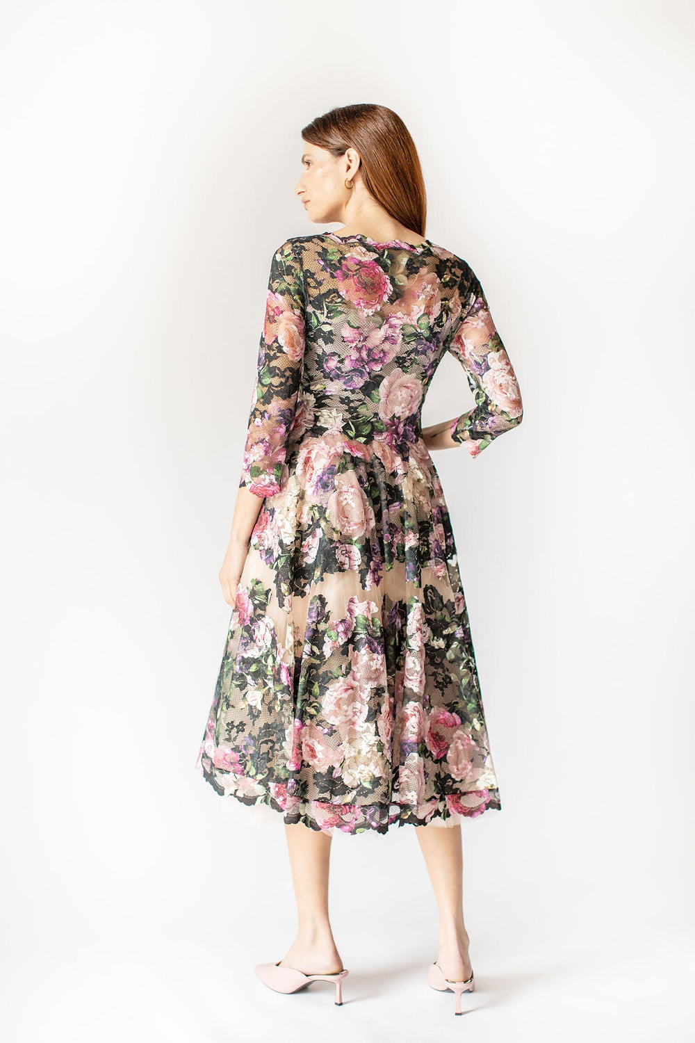 Dieses atemberaubende Stück zeichnet sich durch eine A-Linien-Silhouette mit Blumenmuster aus, die oben eng anliegt und unten anmutig fließt und so eine schmeichelhafte und feminine Passform bietet.