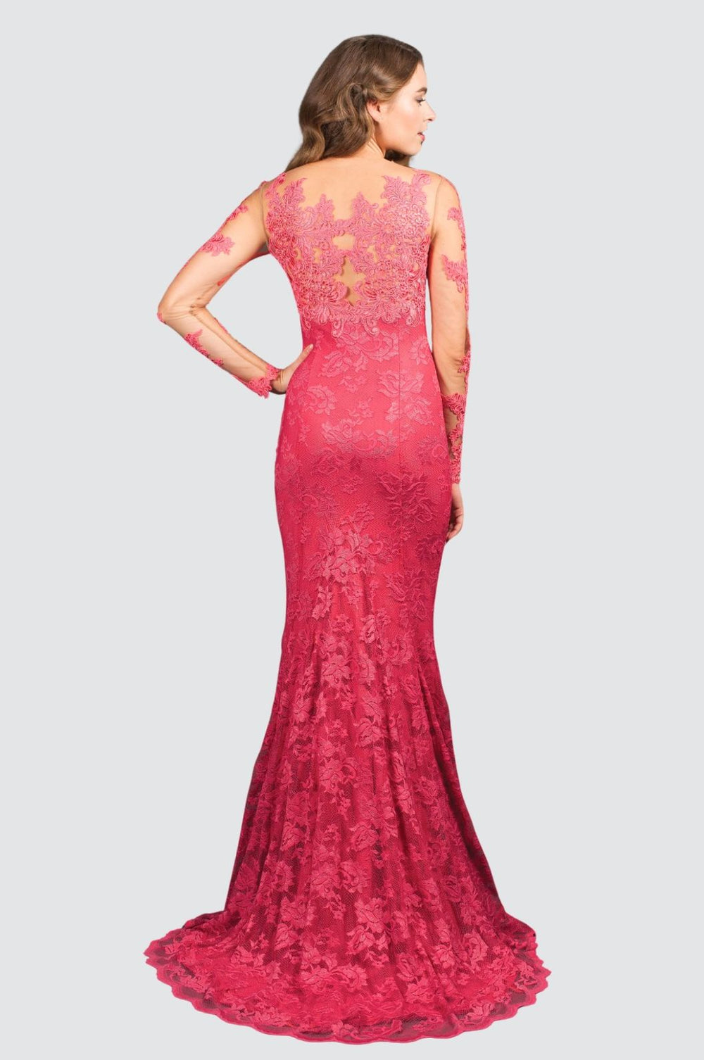 Setzen Sie ein Statement mit diesem atemberaubenden langärmeligen Spitzenkleid in leuchtendem Rosé. Mit aufwendigen floralen Spitzendetails von oben bis unten vereint dieses bodenlange Kleid Eleganz und Dramatik. Das taillierte Oberteil und die Meerjungfrauen-Silhouette schmeicheln der Figur, während die transparenten Spitzenärmel für eine romantische Note sorgen.