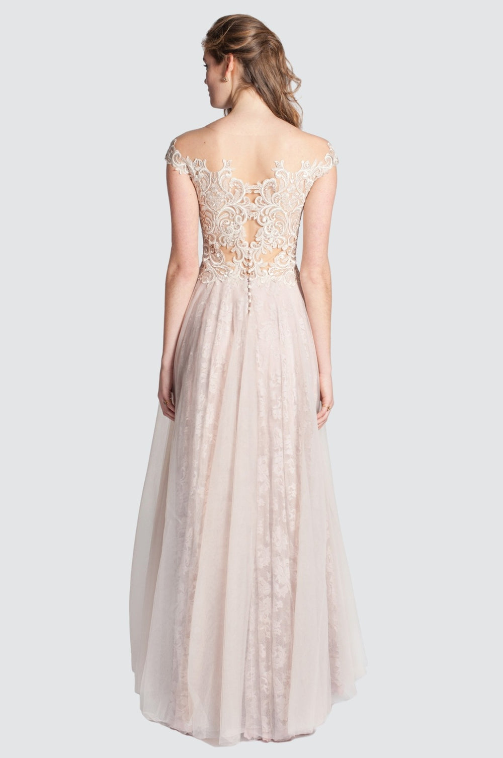 Gefertigt aus feinster elfenbeinfarbener Spitze und champagnerfarbenem Futter, erzählt jede Naht eine Geschichte von Romantik und Luxus. Der tiefe V-Ausschnitt verleiht einen Hauch von Verführung und lenkt den Blick auf Ihre strahlende Schönheit, ohne dabei anmaßend zu wirken. Die zarte Spitze fällt anmutig über das Oberteil und mündet in eine schwungvolle Schleppe, die jeden Schritt mit Anmut und Zauber erfüllt.