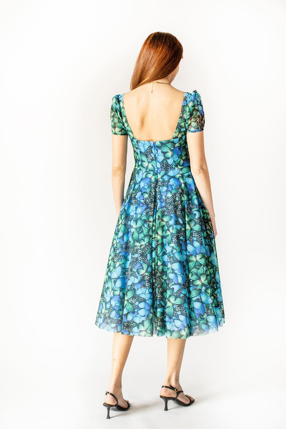 Farbe: Exotischer Schmetterlings-Tüll auf Azur-Futter