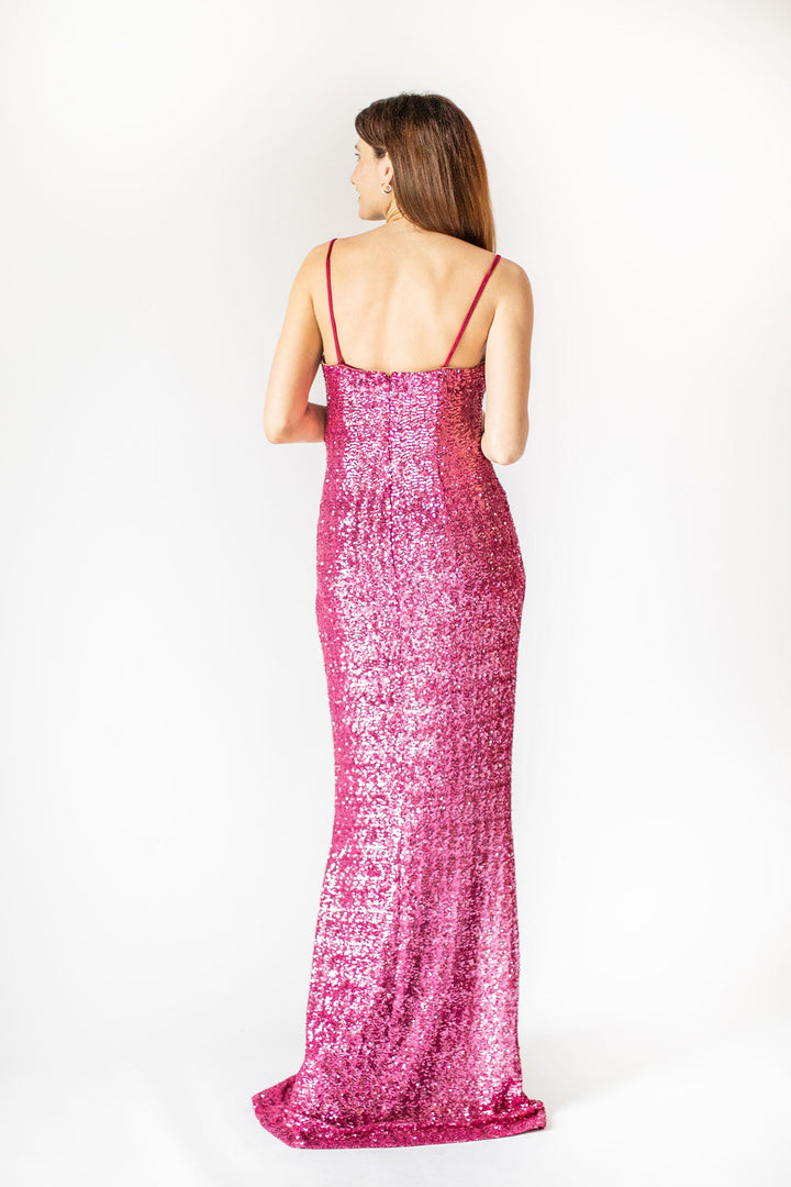 Vibrant Pink Shoulder Straps Sequins Gown